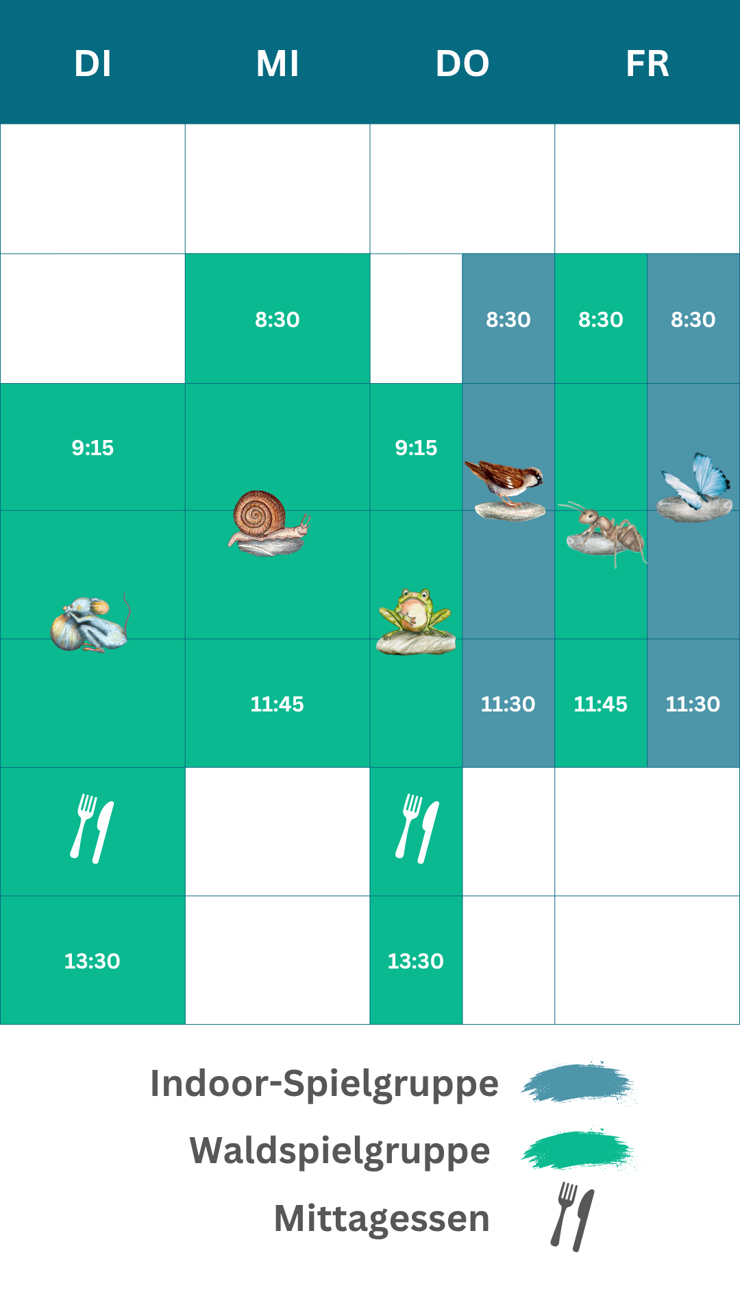 Alle Sinne einsetzen, den Jahreszyklus erfahren und die Natur erkunden. Wir möchten die Kinder für die Natur sensibilisieren und ihnen eine Basis bieten, damit sie im weiteren Leben die Natur als Erholungsort nutzen können.